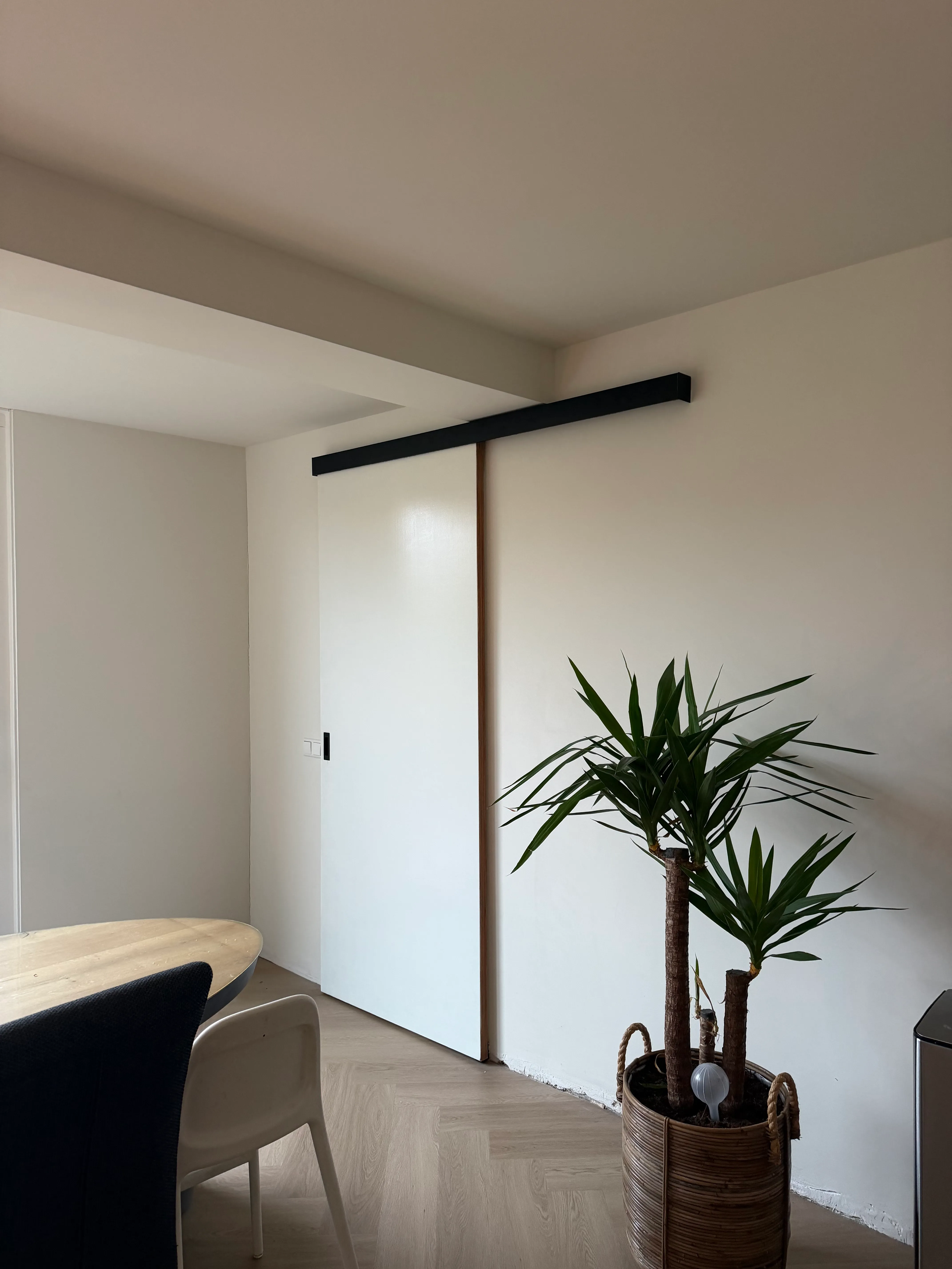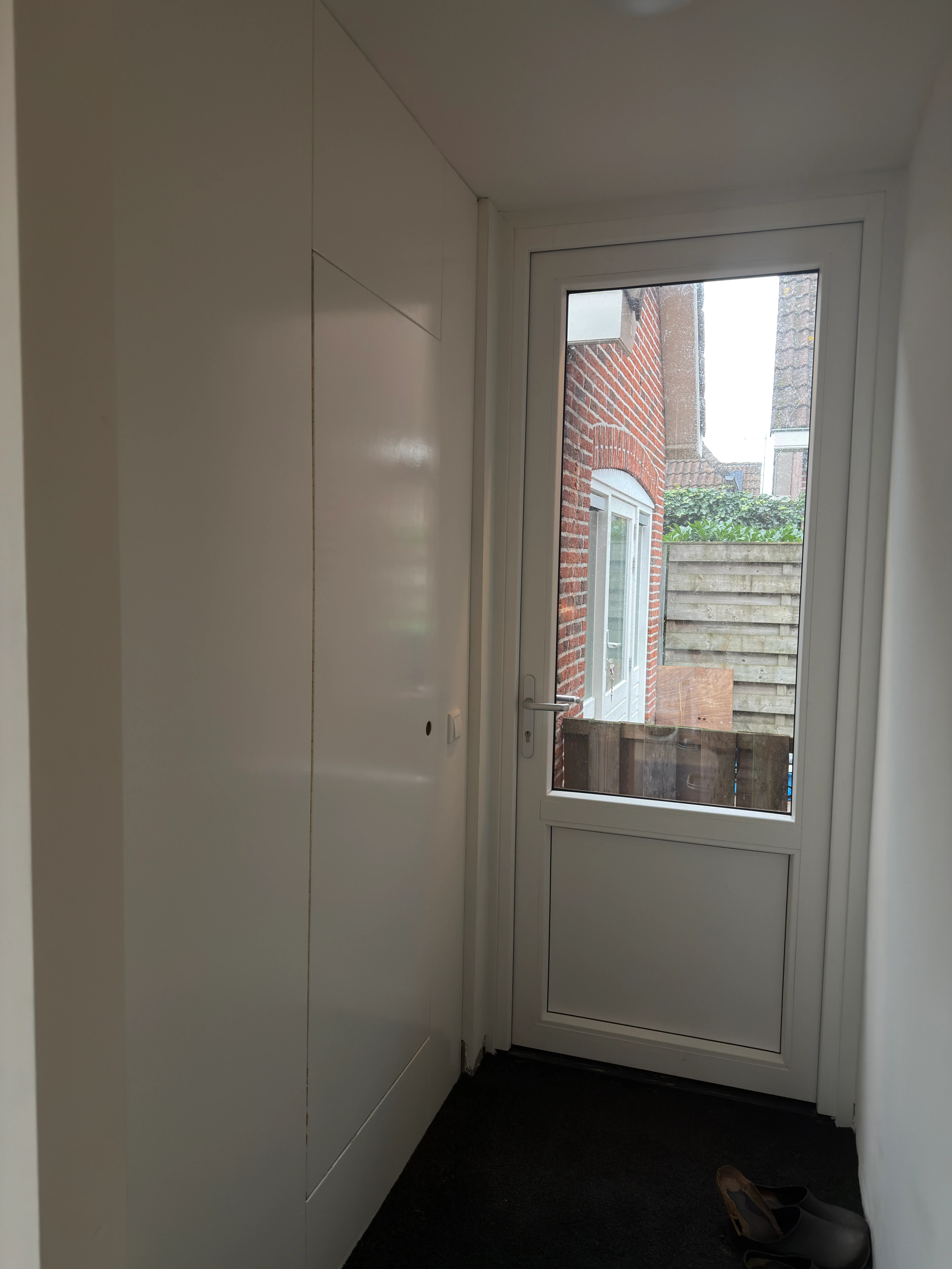 Aan de binnenzijde hebben wij een doorbraak gemaakt tussen de oude bijkeuken en de keuken. Door deze ruimtes samen te voegen, is er een mooie leefruimte ontstaan die nu dient als keuken en eetkamer. Dit zorgt niet alleen voor meer comfort, maar ook voor een logische en open indeling van de begane grond.